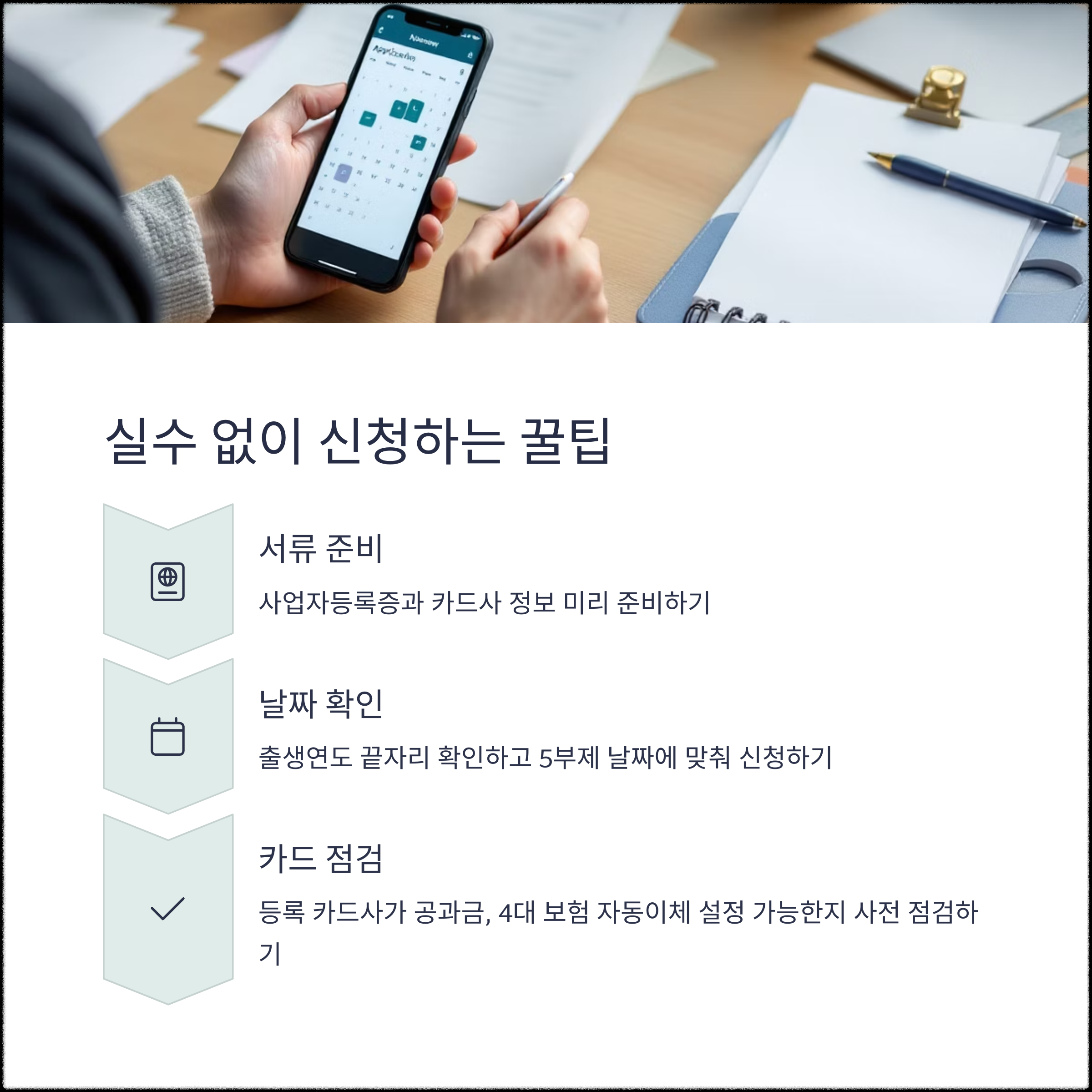 이 과정을 잘 준비하면, 중간에 탈락되거나 승인 지연 없이 빠르게 지원을 받을 수 있습니다. 특히 카드 자동이체 등록을 빠르게 해두면 크레딧이 자동으로 차감되어 납부 관리도 훨씬 편리해집니다.
